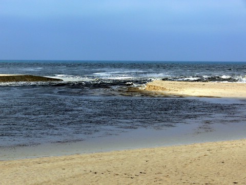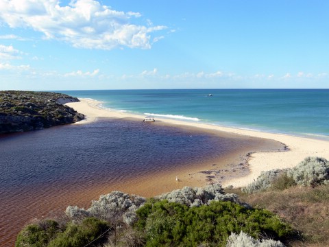 ein Sanddamm den Moore River vom Ozean. Wir haben die Wahl, im
