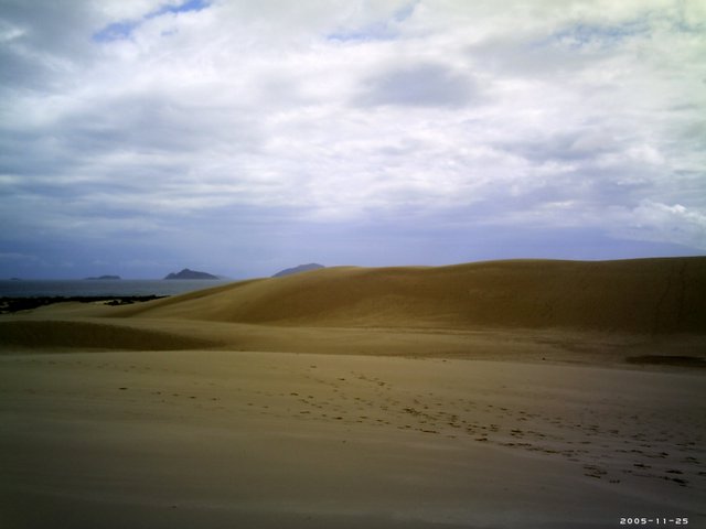 stellenweise in riesige Sanddünen über, die bis zum Meer reichen.