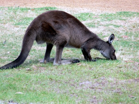 entsprechend sind Kängurus überall anzutreffen. Eines grast direkt bei