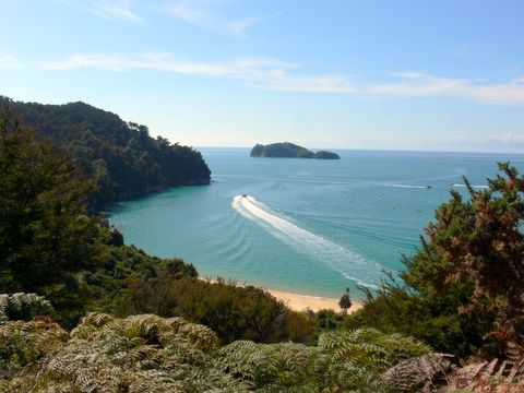 Abel Tasman Nationalpark, Nelson und Marlborough Sounds Abel Tasman Nationalpark Der Abel Tasman Nationalpark ist ein Juwel, das an der Nordküste der Südinsel, nördlich von Nelson liegt. Wir wohnen in Marahau, wo der mehrtägige Coast Track beginnt. Wir begehen auf einer Tageswanderung einen Teil dieses Tracks, der uns durch grünen Busch und Küstenwald führt. Goldene Sandstrände und weisse Felsen säumen das Ufer des Meeres, welches wir bei Flut und Ebbe erleben. Der sehr flach verlaufende Sandstrand bei Marahau lässt bei Ebbe ein faszinierendes Gemälde von Sand und Wasser entstehen. Am Abend des 3.3. gratulieren wir - bei wolkenlosem Himmel mit Vollmond - Mark, der gerade frühstückt, zum Geburtstag. In der Schweiz ist in der Nacht darauf eine Mondfinsternis zu beobachten, während der wir bereits wieder bei Sonnenschein wandern.