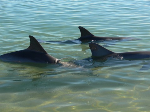 die wildlebenden Delphine, die hier tagtäglich am Strand vorbei schwimmen. Seit 30