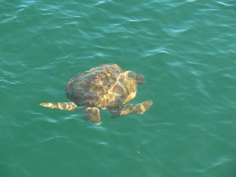 Leben sehen wir eine wildlebende Schildkröte. Auf der nahe gelegenen