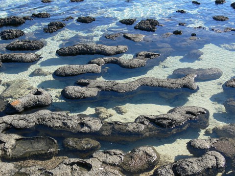 Felsen gebildet aus Cyanobakterien. Diese entwickelten sich vor 3 Mia Jahren auf