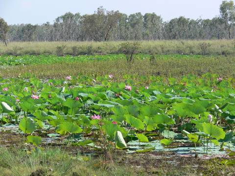 Von Darwin nach Alice Springs Nach einem weiteren Aufenthalt in der Schweiz - dort erleben wir kulinarische Hochs und sehr heisse und nasskalte Tage - fliegen wir über Singapur zurück nach Darwin. Nach ein paar Tagen Ruhe fahren wir gegen Süden. Kakadu National Park Wir fahren nochmals durch den Kakadu National Park. Die Schulferienzeit ist vorbei, es wird ruhiger. Nach einer Nacht in Jabiru machen wir südlich davon den Iligadjarr Walk, der durch ein Feuchtgebiet führt, das von Wasserlilien übersät ist. Die nächste Nacht verbringen wir im einfachen Campground Mardugal unter einem wunderbaren Sternenhimmel. Am Morgen besuchen wir nochmals das Gebiet von Yellow Water und gehen zu Fuss den Wasserläufen nach.